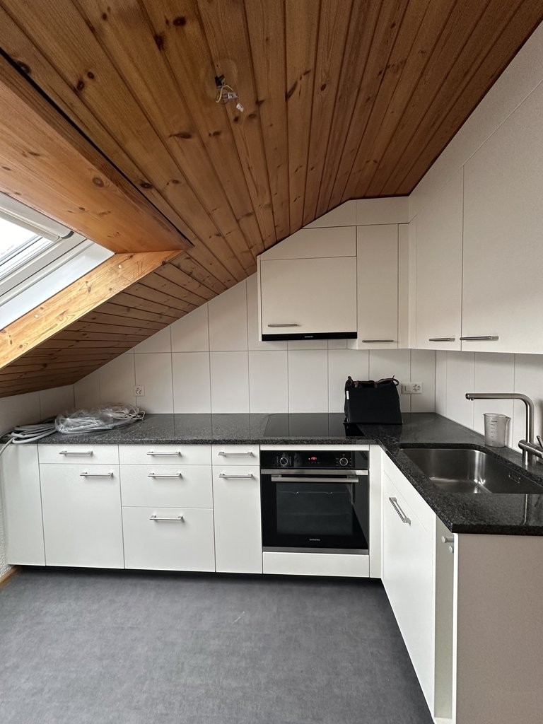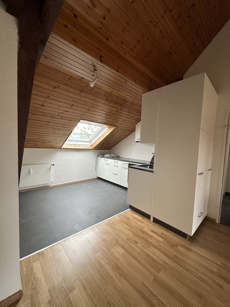 Die Wohnung verfügt über eine moderne Einbauküche, ein Bad/WC, und Zimmer mit Parkettboden.