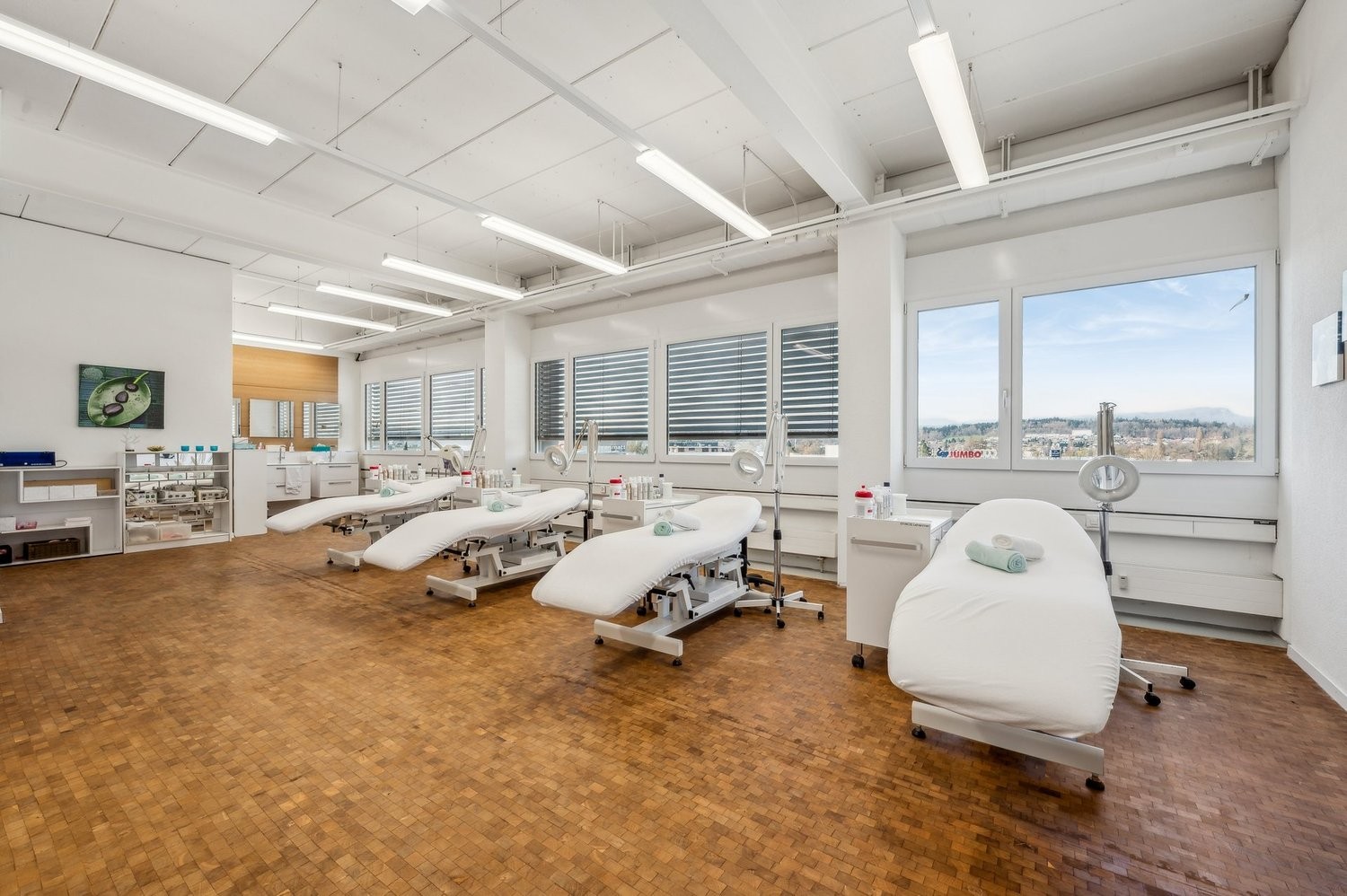 - Erweiterter Grundausbau: Boden: Robuster anthrazitfarbener Teppich/ Tötzli-Holzboden, Decke: Teilweise Akustikdecke, Wände: Verputzt, Haustechnik: Ausbau bis Schachtaustritt