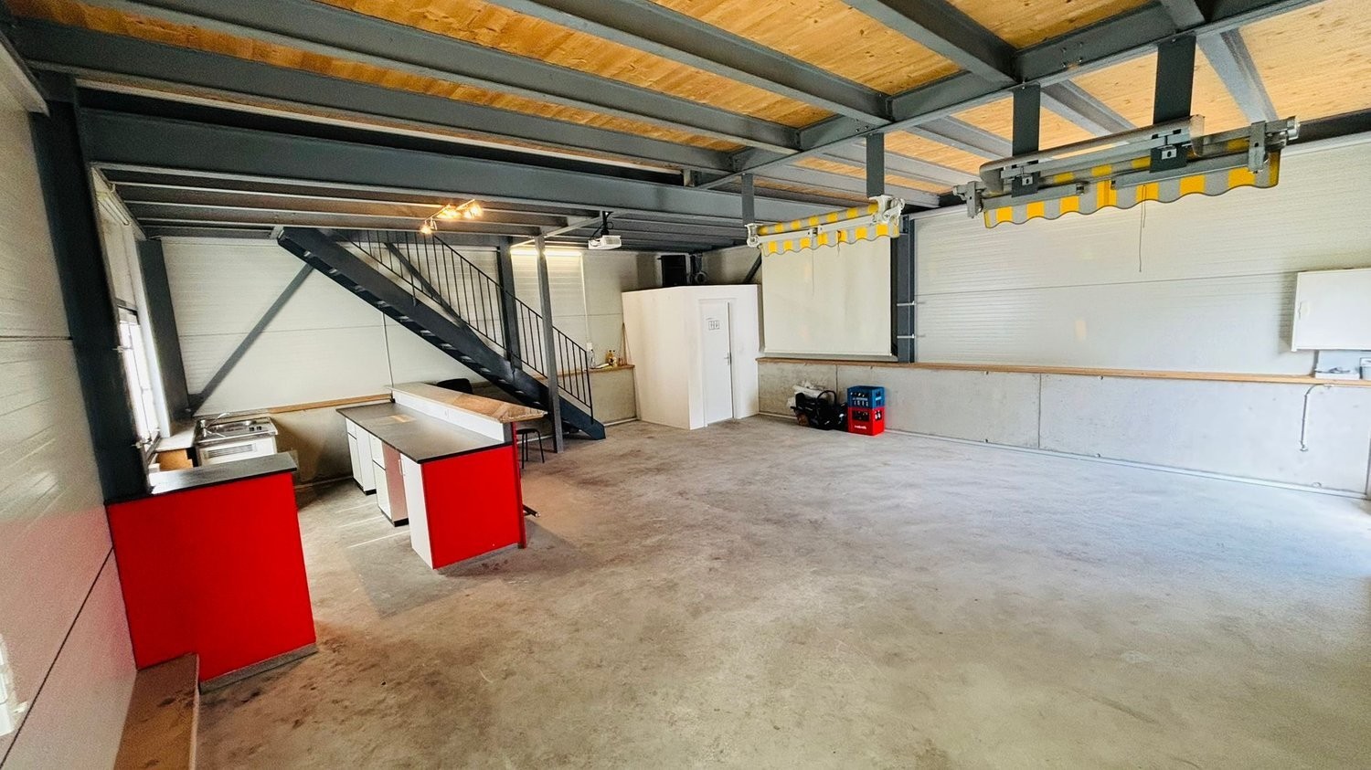 Die Räume sind ab sofort verfügbar und eignen sich sowohl für ein Unternehmen mit Werkstattbedarf als auch für Dienstleister, die Büroflächen mit einem Pausenraum kombinieren möchten.