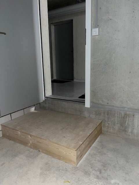 Der Zugang ist über den offenen Korridor oder über die Einstellhalle (Lift vorhanden) möglich. Beim Eingang zu dem Räumen ist jeweils ein Absatz von ca. 40cm vorhanden.