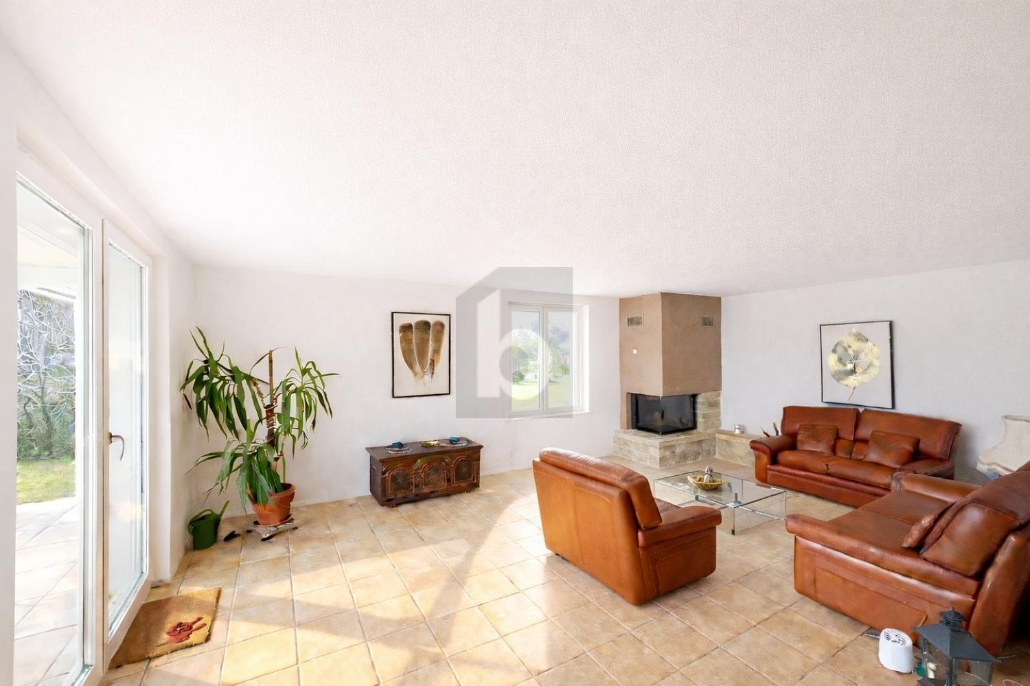 - grande pièce à vivre avec cheminée salle à manger et accès au jardin