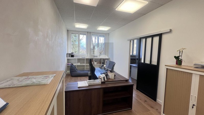 Le bien se compose de trois pièces bien agencées, permettant laménagement de bureaux individuels, dune salle de réunion ou dun espace daccueil selon vos besoins. Une cuisine indépendante est à disposition pour plus de confort au quotidien, ainsi quun WC séparé.Deux places de parc sont disponibles en sus du loyer, un atout appréciable pour les collaborateurs et la clientèle.
