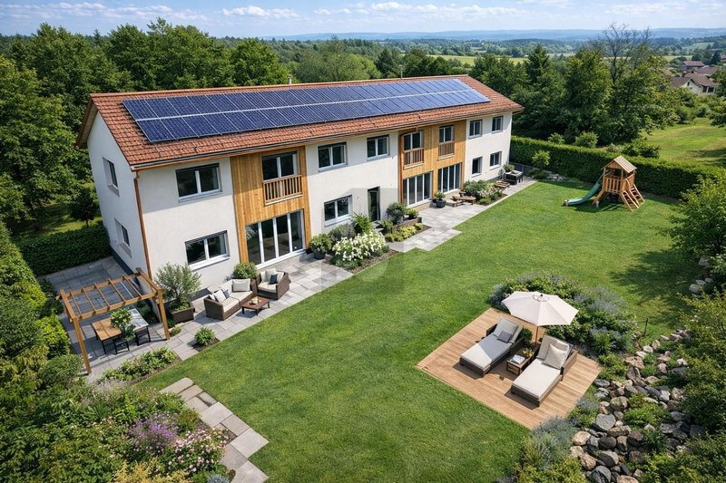 Etat du bâtiment: construction totalement neuve, matériaux de qualité, pompe à chaleur STIEBEL ELTRON, installation photovoltaïque