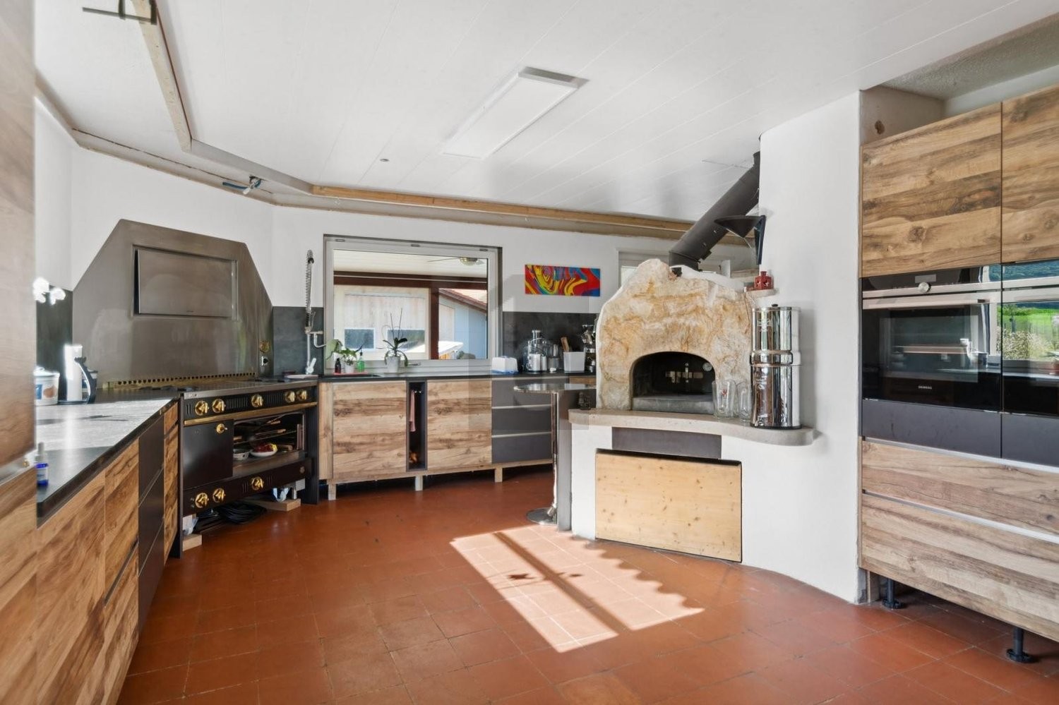 Cette propriété exceptionnelle, d'une surface habitable de 365 m², propose un concept flexible de maison pour deux familles comprenant au total 10 pièces, actuellement réparties en un appartement de 4 pièces et un duplex spacieux, qui peuvent être réunis si nécessaire. La cuisine équipée de manière semi-professionnelle, avec son four à bois traditionnel, constitue le cur de la maison. Sur le terrain de 1 157 m², vous trouverez une terrasse ensoleillée, un vaste jardin ainsi qu'un chalet annexe indépendant. Un garage pouvant accueillir quatre voitures ainsi que la possibilité de personnaliser les sols et les finitions viennent compléter cette offre polyvalente.