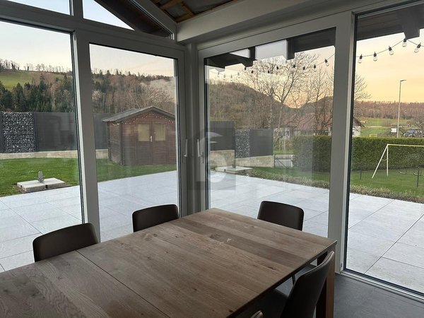 Vous recherchez une maison chaleureuse et accueillante pour accueillir votre famille? Avec ses 7.5 pièces, cette maison spacieuse et lumineuse offre un espace de vie de 183 m² sur un terrain de 1008 m². Vous allez adorer la grande baie vitrée qui inonde la pièce de lumière naturelle, ainsi que la terrasse immense pour profiter des beaux jours. La parcelle entièrement clôturée, avec 2 garages et 6 places de parc pour vos véhicules. Les panneaux solaires et thermiques vous permettent de faire des économies d'énergie, tandis que le jardin et le cabanon de jardin sont parfaits pour les amateurs de verdure. Ne manquez pas le grand sous-sol, la buanderie, la cave et l'abri PC pour un espace de rangement supplémentaire.