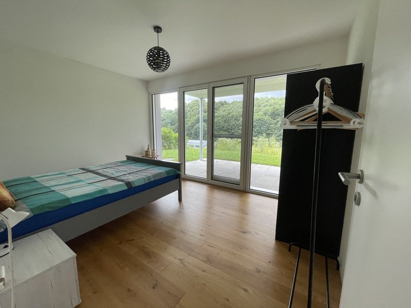 Très belle villa 138m² (+ mezzanine 30m²) en parfait état et au calme. Elle est situé à 10 min en voiture/bus de Fribourg. Au rez de chaussée, grande pièce à vivre de 39m² sur parquet bois, belle cuisine moderne avec plaque induction et multiples rangements. Toilettes avec douche. Aun rez de jardin, 3 belles chambres dont une avec dressing. Salle de bain avec douche, double vasques et baignoire. Grande terrasse 25m² plein sud avec store télécommandé. BSO sur les baies vitrées et dans les chambres.