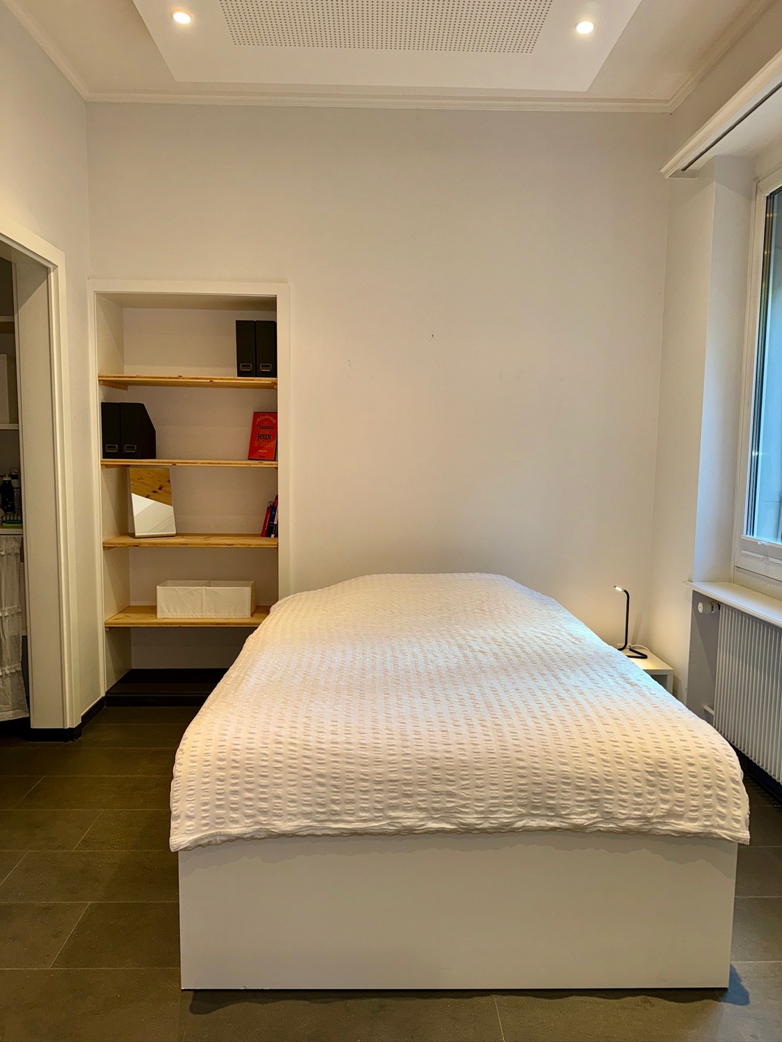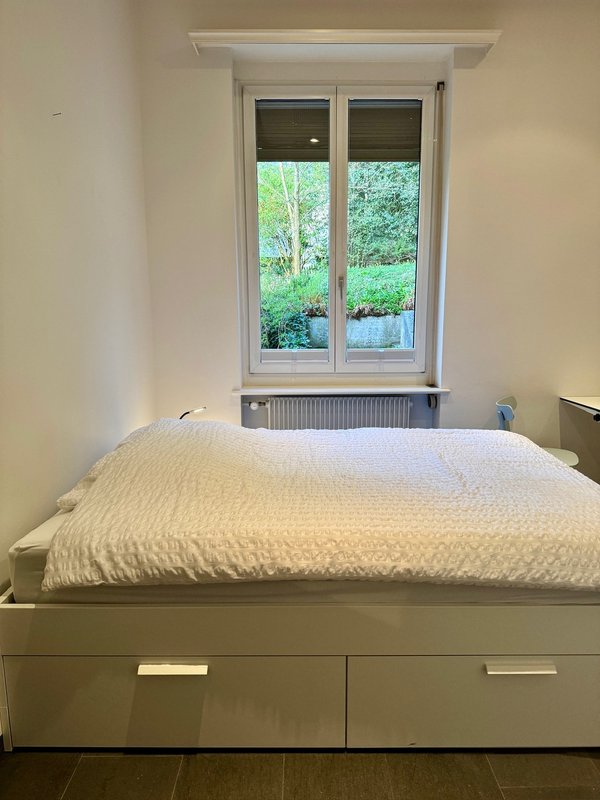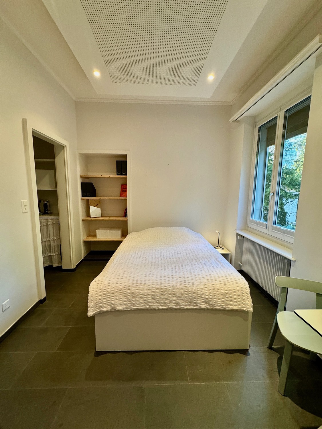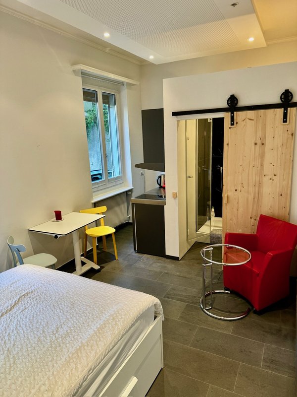 Great small Business-Studio in a Jugenstil-Villa in a park - only 4 min by foot from main station, 10 from to uni St.Gallen: fully furnitured, kitchen fully equipped, WLAN; Bed sheets etc. Apartment with double bed, table etc. Kitchen and Bathroom. Ideal for one person. To rent weekly or monthly. Big garden outside. Parking on request directly at the hoiuse