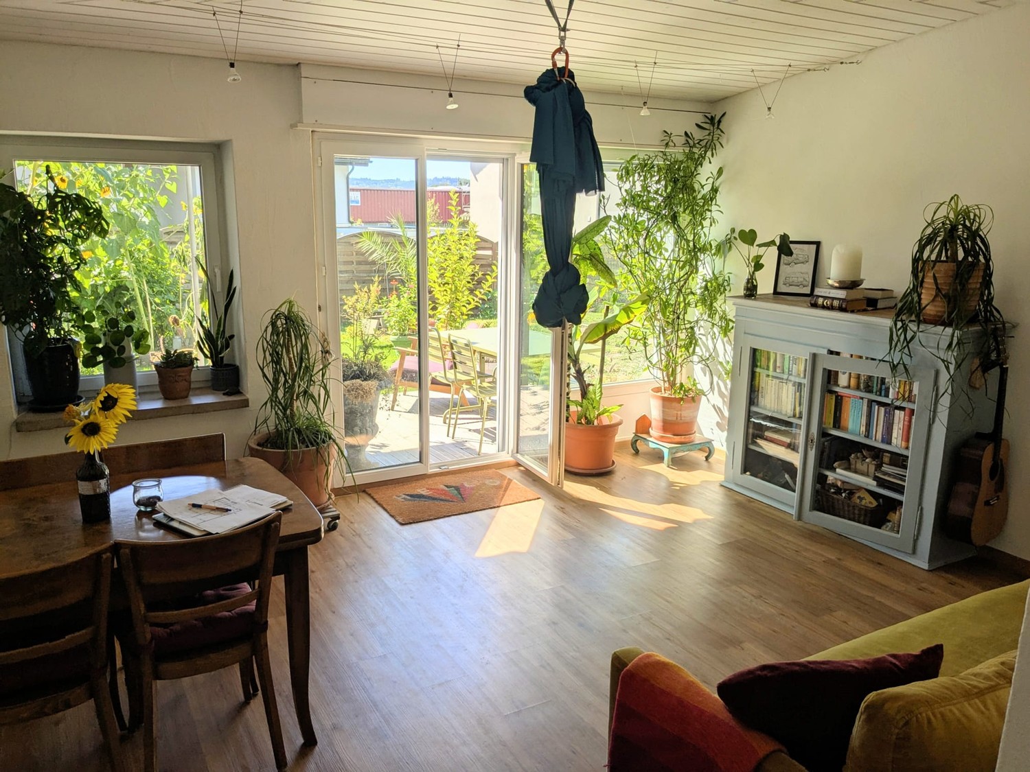 Im Erdgeschoss befinden sich das Wohnzimmer mit Zugang zum Garten, die Küche mit gutem Stauraum, das Badezimmer sowie ein Zimmer.