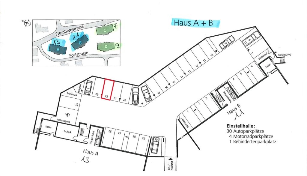 Einstellplatz: Nr. 19 / 22 (im Grundrissplan rot markiert!)