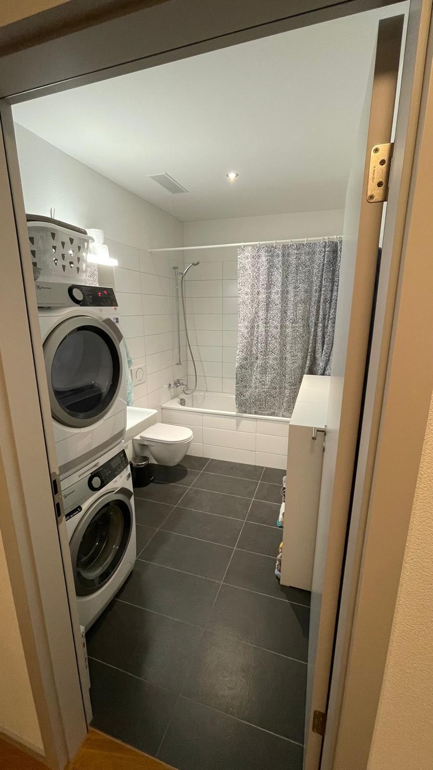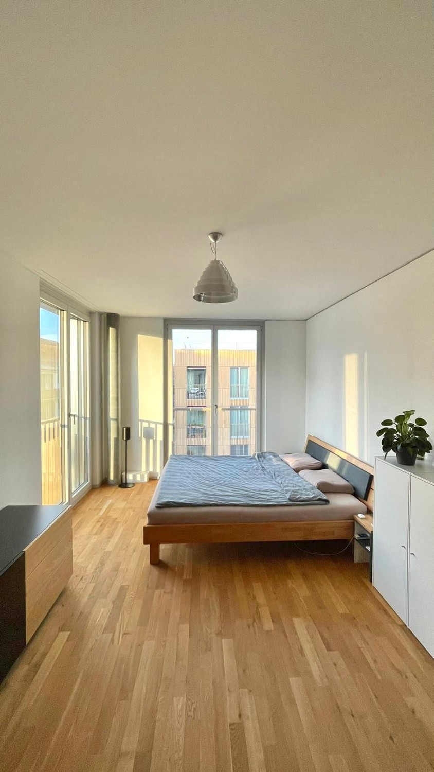 Das Zimmer ist gross und hell. Die Wohnung bietet eine Wohnfläche von 159m2, einen Balkon, 3 Badezimmer (2 mit Dusche) sowie Waschmaschine und Tumbler in der Wohnung. Die Tramstation ist 2 Minuten entfernt, mit einer Verbindung zum Bahnhof im 2-Minuten Takt.