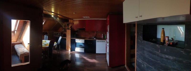Gemeinschaftliche Nutzung von Küche, Waschmaschine und einem Badezimmer im Dachgeschoss. Das Badezimmer steht vorrangig dem WG-Zimmer zur Verfügung, wird aber selten auch von Gästen genutzt.