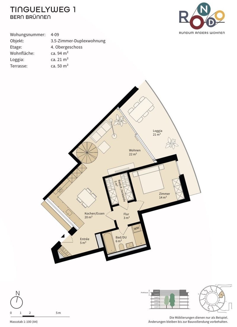 Diese attraktive 3.5-Zimmer-Maisonette-Wohnung überzeugt durch ihre offene Raumgestaltung und die grosszügige Dachterrasse. Die Wohnung erstreckt sich über zwei Etagen und bietet ein modernes Wohngefühl mit viel Tageslicht.