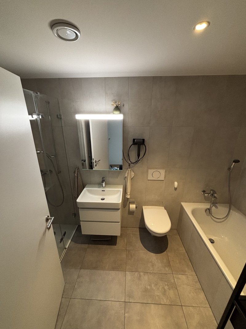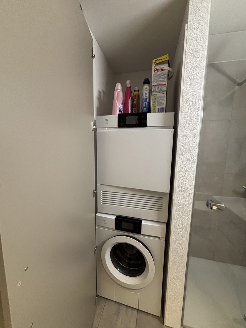 Ein Parkplatz (Tiefgarage) mit elektrischer Ladestation und einem kleinen Reduit kann für 180.-/Mt dazugemietet werden.