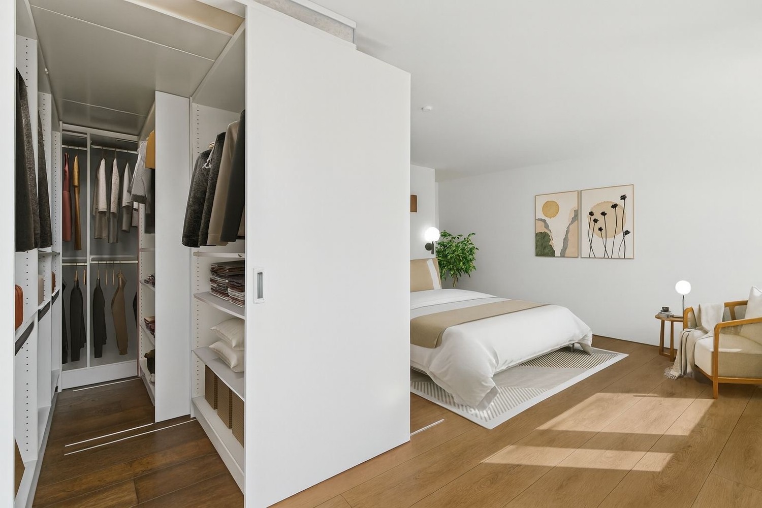- Begehbarer und verschiebbarer Kleiderschrank im Schlafzimmer mit genügend Ablagefläche