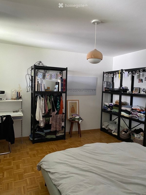 L?arrêt de bus est à 3min, il y a une migros ~8min à pied et une boulangerie Brut juste à côté.