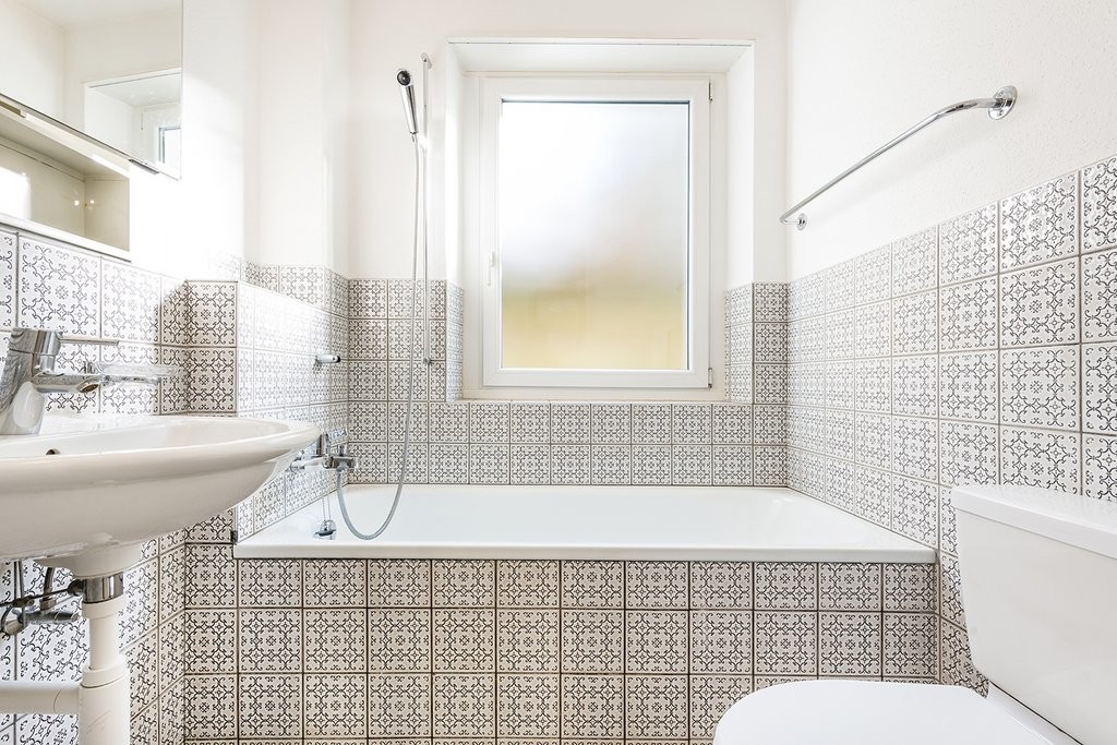 - Nasszelle mit pflegeleichtem, hellem Plattenboden