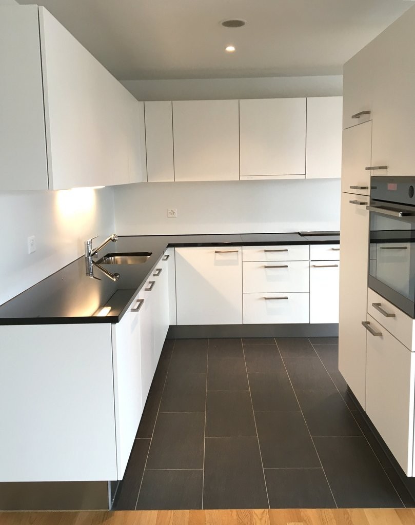 - moderne Küche mit viel Stauraum, Geschirrspüler und Backofen