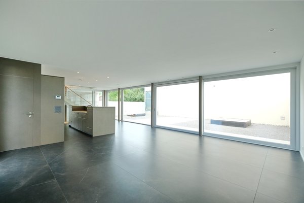 Kern dieses Hauses bildet der grosse, zum Innenhof hin vollverglaste, Wohn- und Essbereich mit offener Küche und Kochinsel.