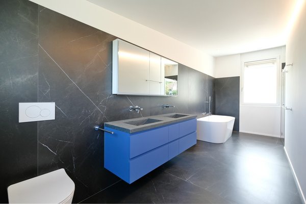 Im Obergeschoss befindet sich neben den 3 Schlafzimmern das wunderschöne grossräumige Bad, mit freistehender Wanne, Dusche sowie grossem Spiegelschrank.