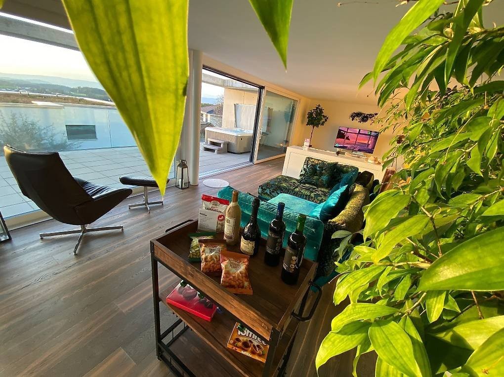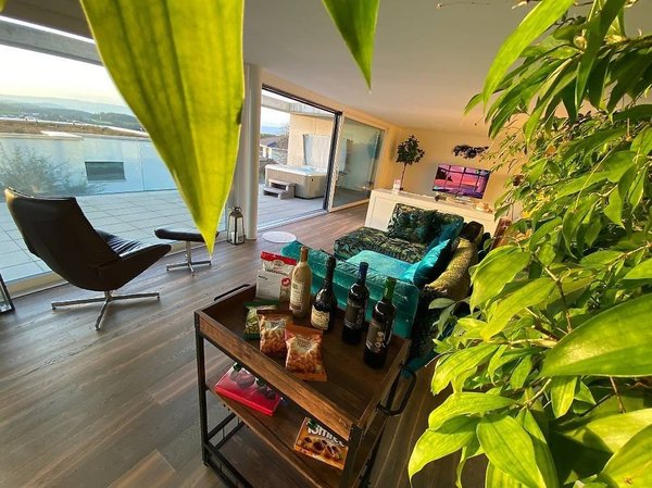 Die Wohnung bietet Ihnen ein einzigartiges Gefühl von moderner Architektur, Luxus, Landleben mit frischer Luft, schönen Landschaften mit Hügeln und Wälder sowie Nähe zum Murtensee, Wohlensee sowie zum Fluss "Saane /Sense". Alle Fotos inkl. Whirlpool bilden das Mietobjekt ab, welches ausschliesslich den Mieter zur Verfügung stehen. Bern ist (mit 15' per Auto) gerade weit entfernt um abzuschalten jedoch auch Nahe genug für einen spontanen Stadttrip.