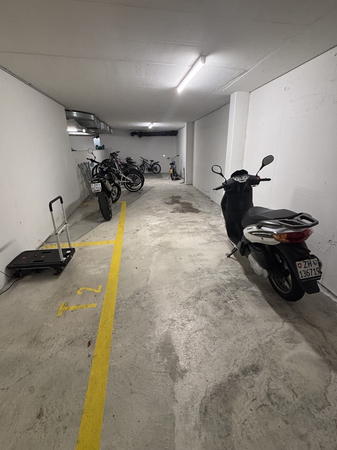 Sicherer Abstellplatz mit abschliessbarem Garagentor.