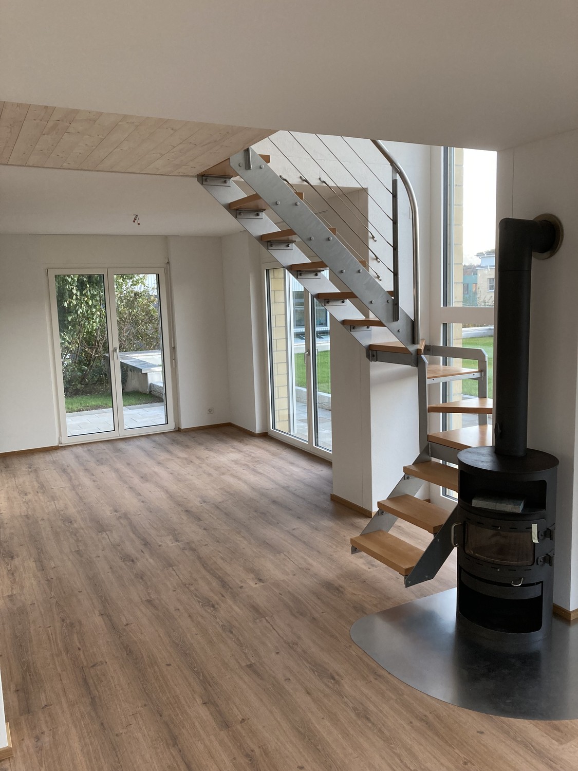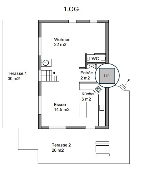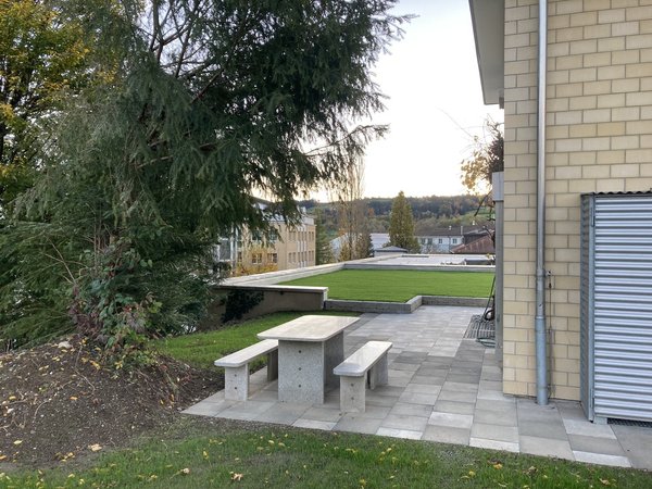Wohnen wie im Einfamilienhaus. Eigene Waschküche, Garage für Kleinauto oder Nutzung als Veloraum, 2 Autoabstellplätze ( einer gedeckt), Kellerraum, Estrichabteil, grosse Sitzplätze.