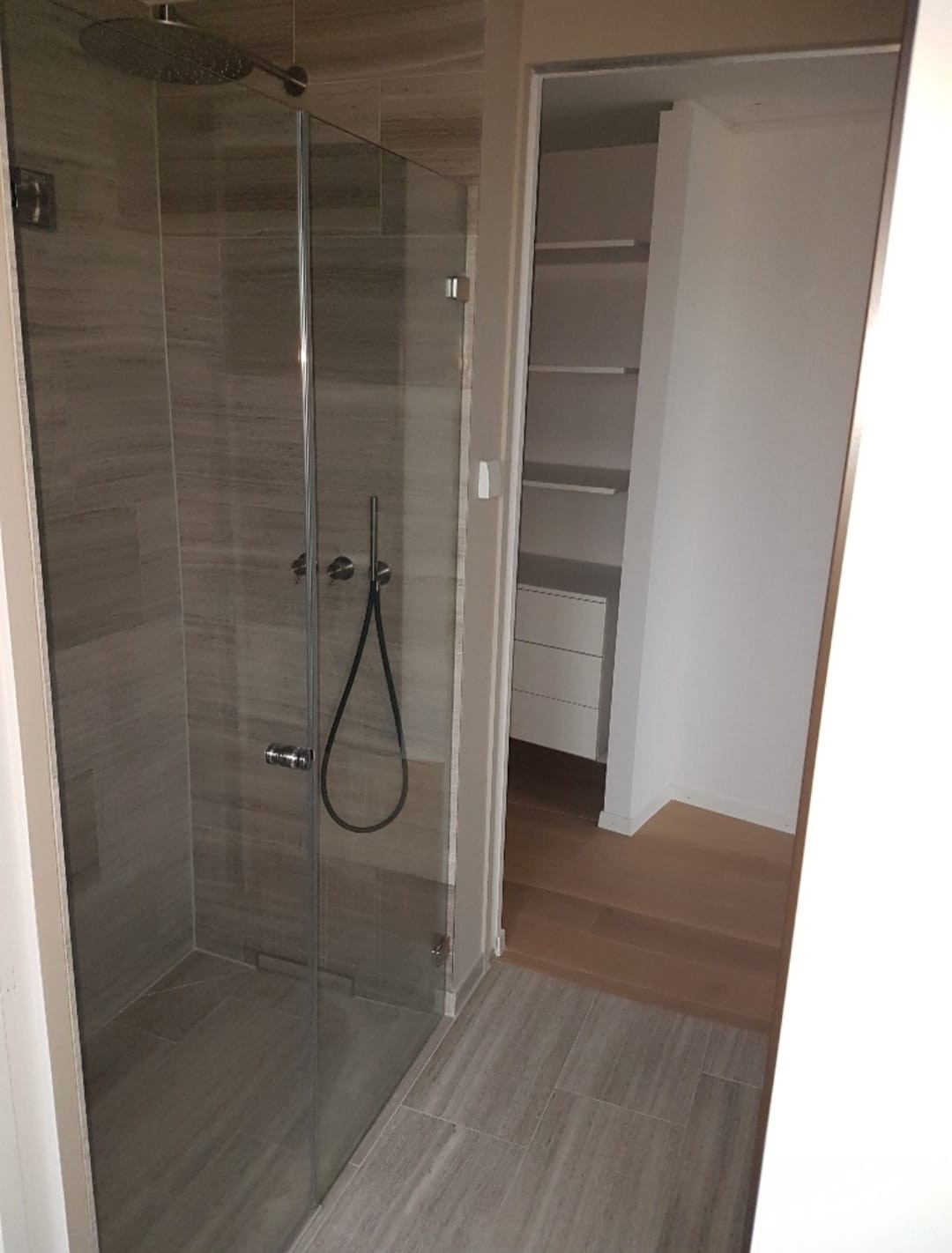 Hauptschlafzimmer mit Ankleideraum ausgestattet mit Regalen