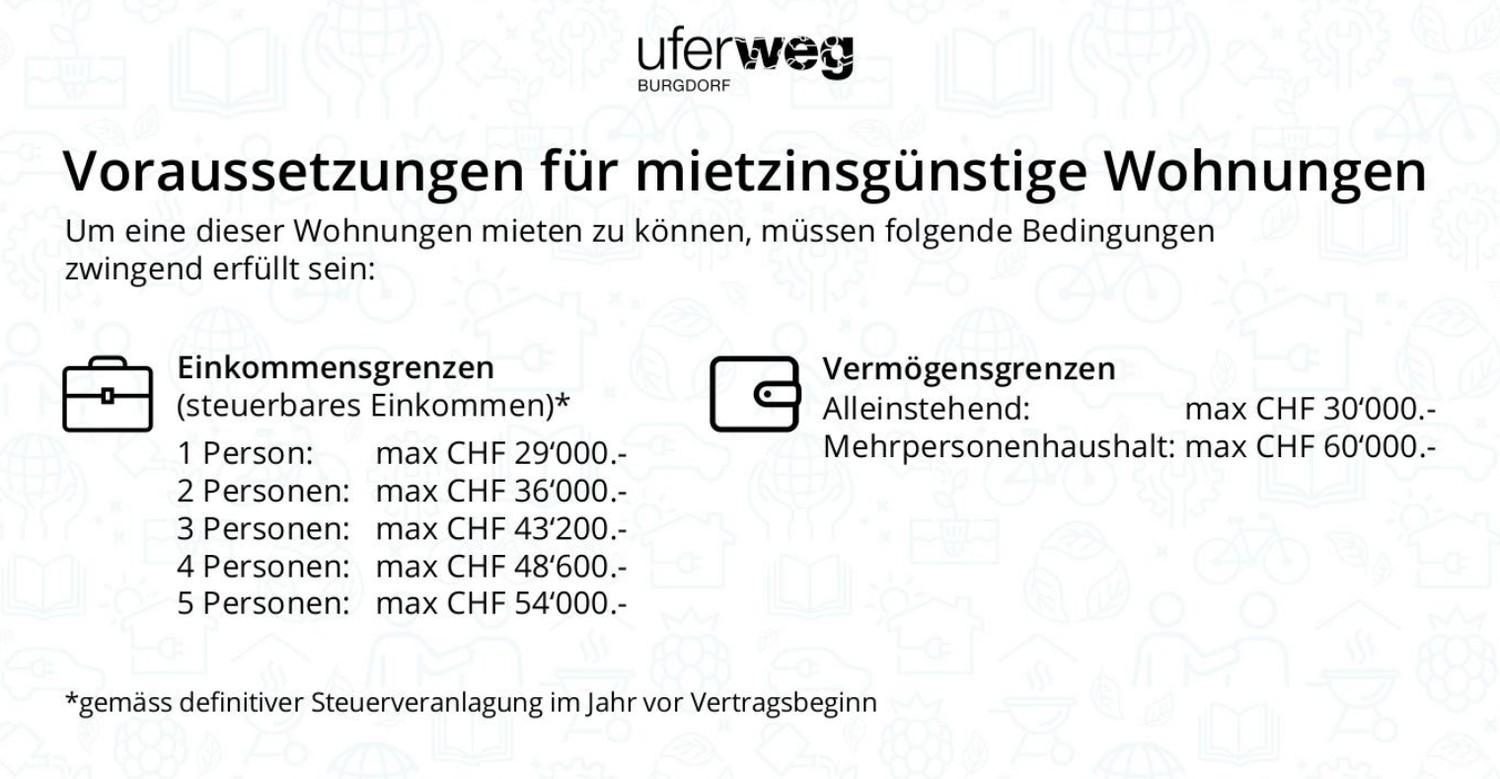 Die Wohnung ist für einkommensschwächere Personen (und Familien), welche die Voraussetzungen für mietzinsgünstigen Wohnraum erfüllen.
