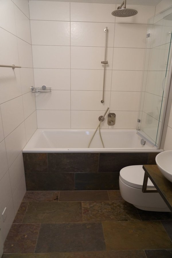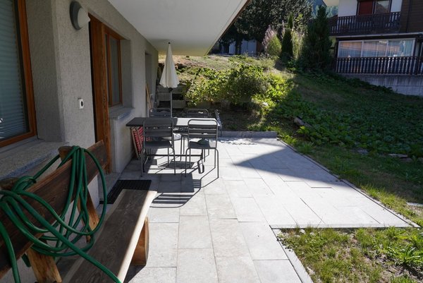Grächen Haus Giardino, 3 Zimmmerwohnunf im EG, 2 Schlafzimmer mit Bad/WC und Du/WC, Natursteinböden, grosser Vorplatz, Miete möbliert CHF 1450.-- pro Monat zuzüglich Nebenkosten