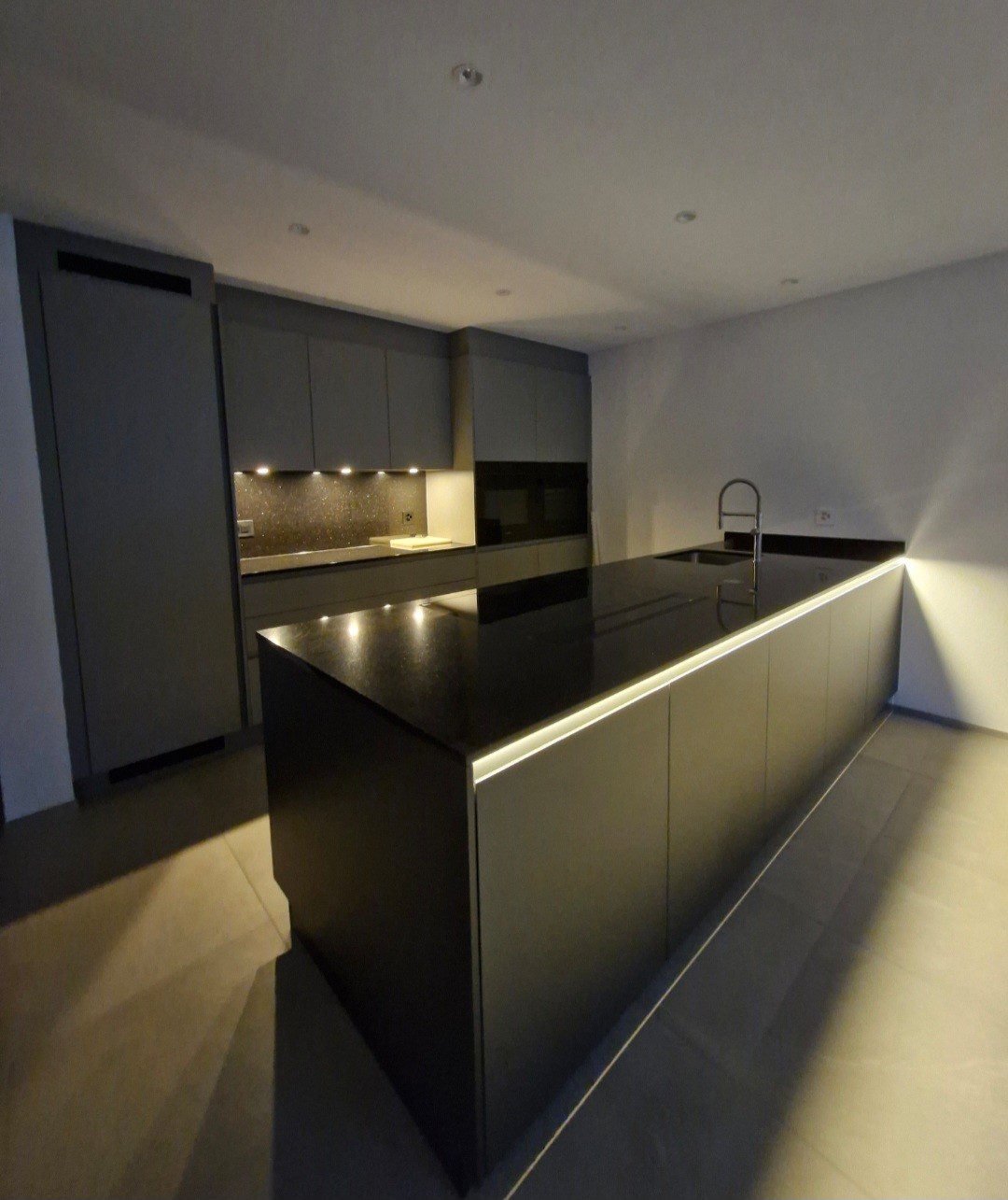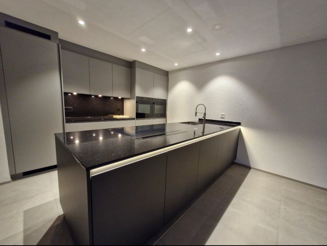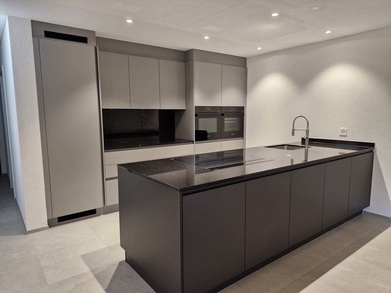 Topmoderne Ausstattung: Die Küche glänzt mit hochwertigen Geräten, während die Indach-Photovoltaikanlage mit eigenem grossen Speicher für nachhaltigen Strom und niedrige Energiekosten sorgt. Anschluss E-Ladestation vorbereitet.