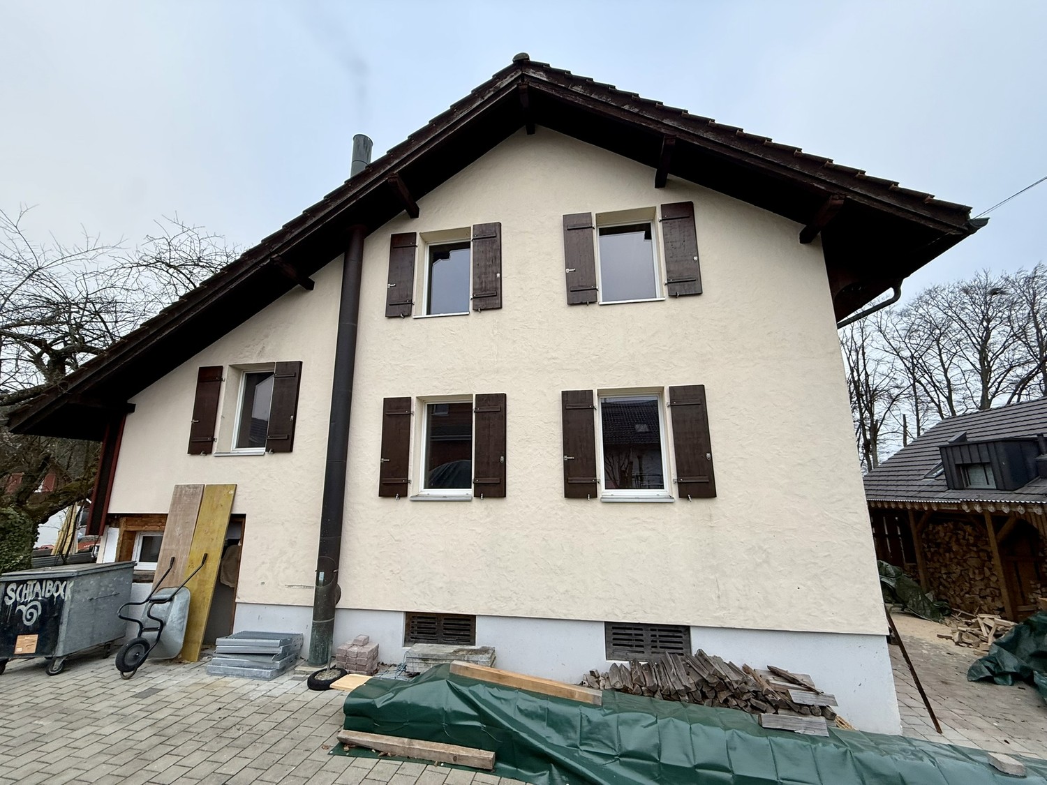 Das Haus befindet sich aktuell in der Kernsanierung, welche von Oktober 2025 bis März 2026 durchgeführt wird. Der Bezug ist nach Abschluss der Arbeiten vorgesehen. Die im Inserat dargestellten Bilder sind Visualisierungen und zeigen den geplanten Endzustand.