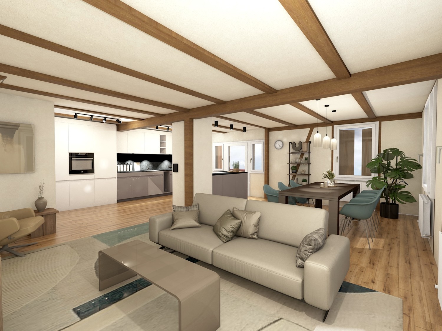 - Heller, offener Wohn Ess Kochbereich mit Ofen