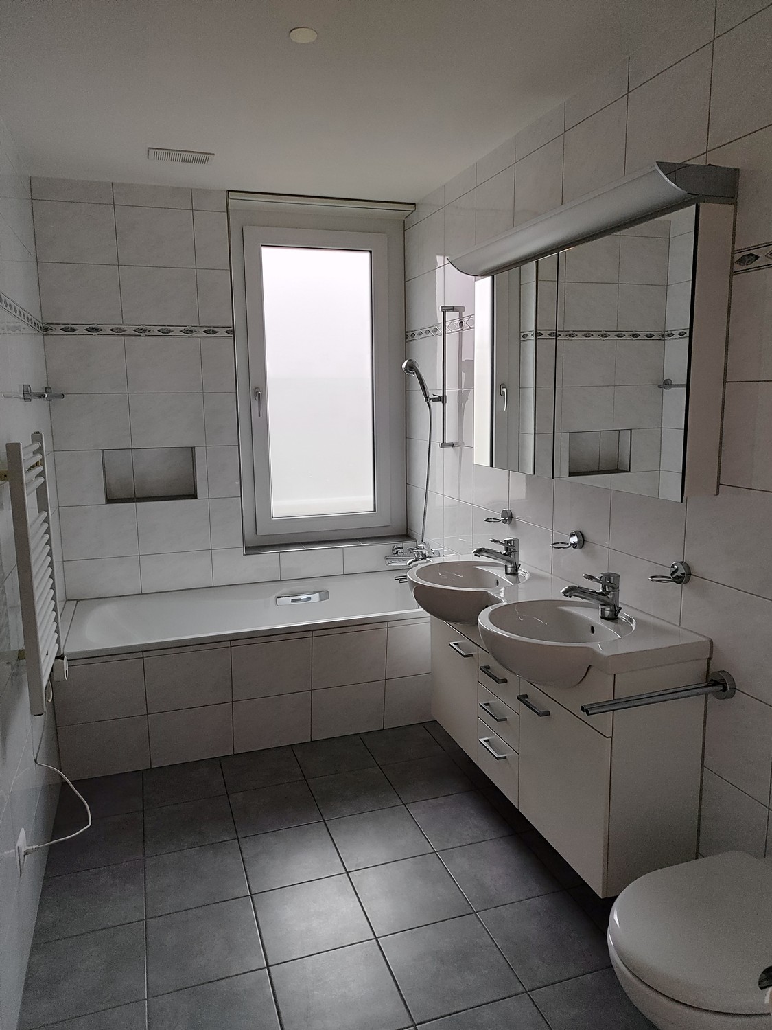 2 Badezimmer: 1x mit Badewanne & Doppellavabo, 1x mit Dusche