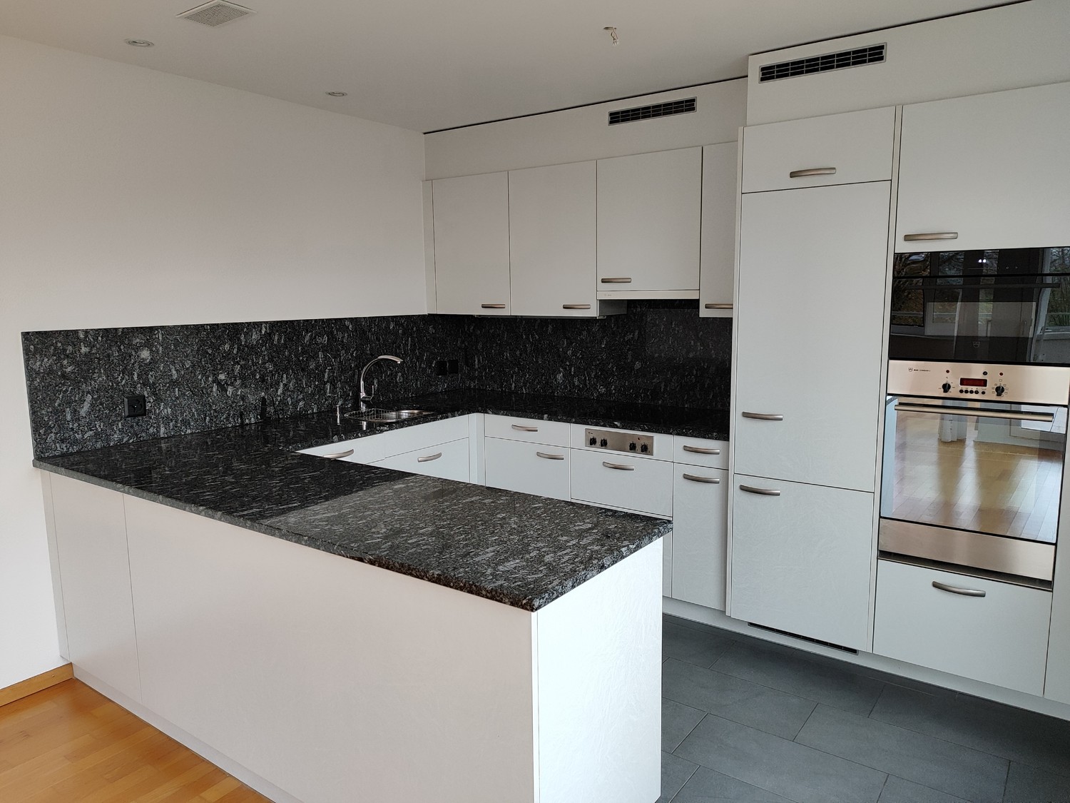 Moderne Küche mit grosser Arbeitsfläche (inkl. Spülmaschine & Mikrowelle)