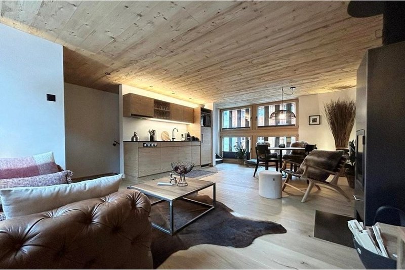 Der neu renovierte Stall bietet Ihnen im Dachgeschoss ein geräumiges Schlafzimmer mit Doppelbett, Satelliten-TV mit Replay, Schreibtisch, Badezimmer mit Dusche/WC inkl. freistehender Badewanne. Eine Etage tiefer befindet sich ein Tages-WC, der Wohnbereich mit Sofa und Cheminée, Satelliten-TV mit Replay, Esstisch und die Küche mit Geschirrspüler, Backofen etc. Die Küche ist komplett eingerichtet. Im Eingangsbereich befindet sich Garderobe, Schuhtrockner, Wachsraum und Waschmaschine.