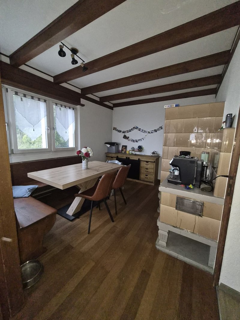 - Funktionierender Kachelofen der auch ans Zentralheizsystem (Öl) angeschlossen ist