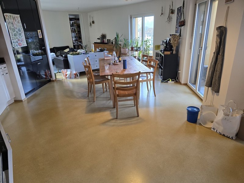Die Wohnung ist insgesamt ca. 140 Quadratmeter gross, hat 4 Zimmer, 2 Bäder, 1 grosszügige Küche mit angrenzendem Wohnzimmer, 1 Balkon und Sitzplatz im Innenhof.
