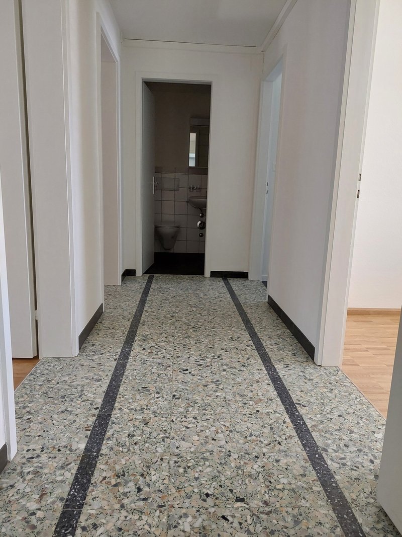 In den Zimmern wurde ein neuer Parkettboden und in der Küche und Badezimmer ein moderner Vynilboden verlegt. Im Gang wurde der ursprüngliche Steinboden aufgefrischt und bringt den Gang zum Strahlen.