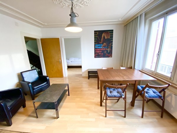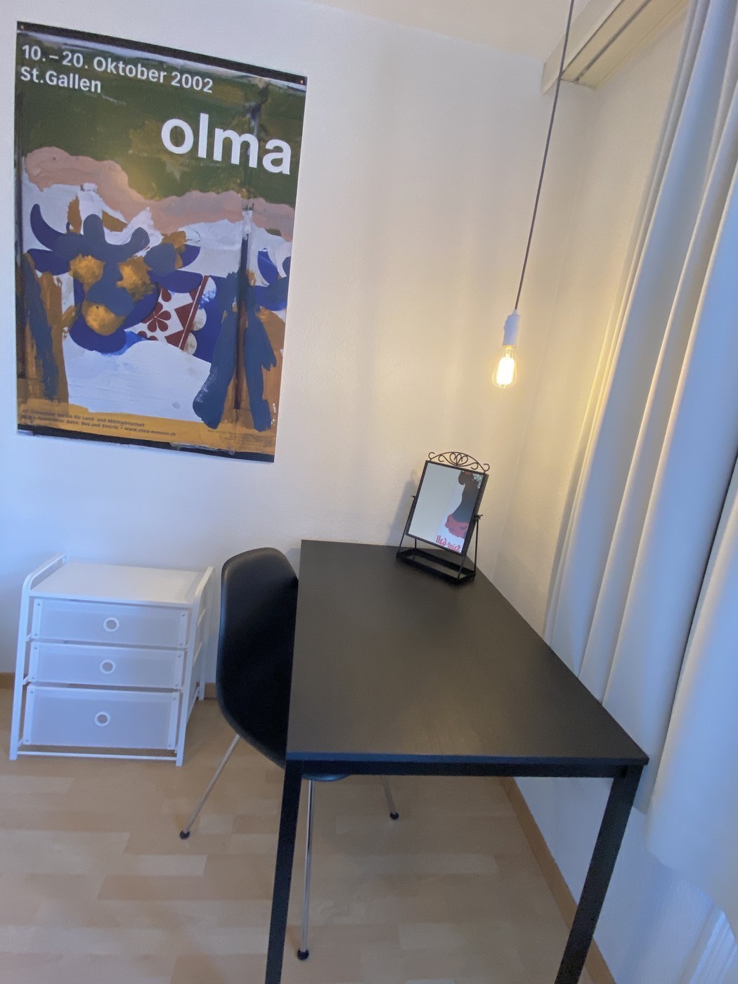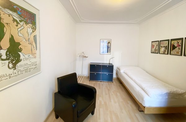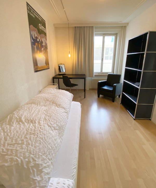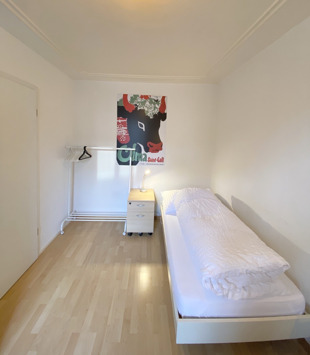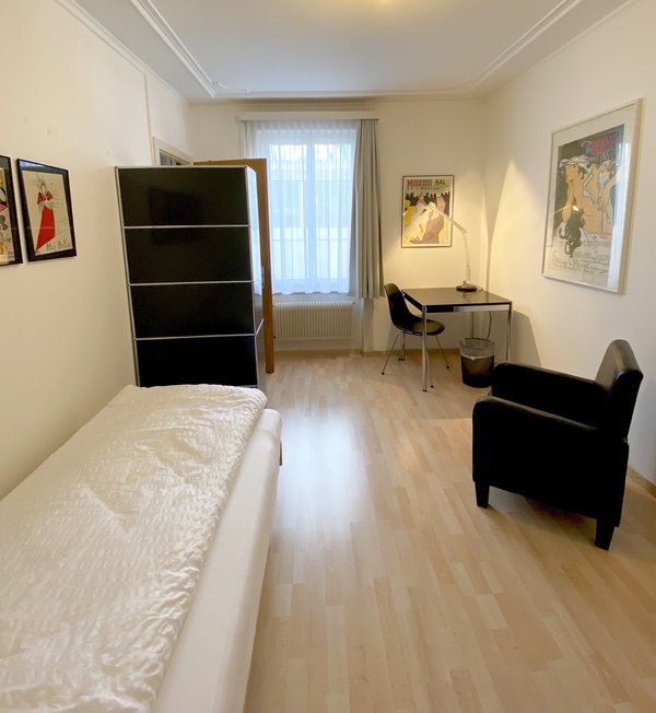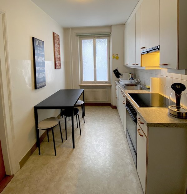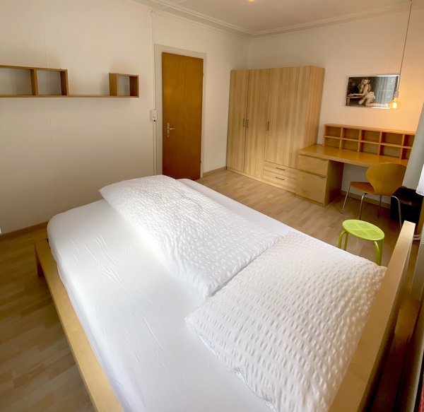 free from 8. Dec. 2025 till end of jan. 2026 + from 1.6.2026 - 31.1. 2027 fully furnished, for short time rental 1-6 months, bed/bathroom kitchen linen, dishware, fast wifi etc is included. - 3 bedrooms plus 1 living room with additional bed, kitchen with table, small bathroom. The apartment is located 8 minutes walk from the Main-Station, near Kreuzbleiche on a quiet street without through traffic. Ideal for students or project workers. Price depends on how long you rent. PP can be rented additionally. For rent for 3 people: 2600.-/mt plus ancillary costs, plus endcleaning when renting less than 5 Months. More than 3 people and less 3 / 4 months: ask for offer. Longterm rental furnished: CHF 1900.-