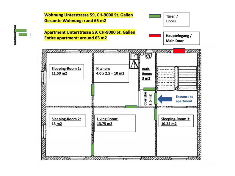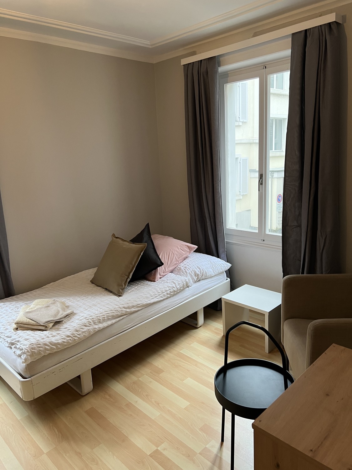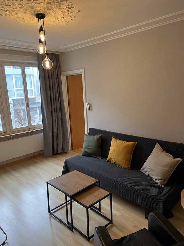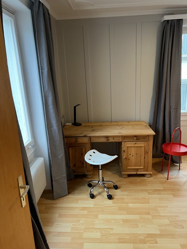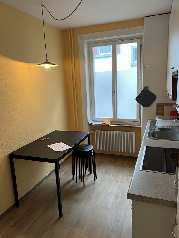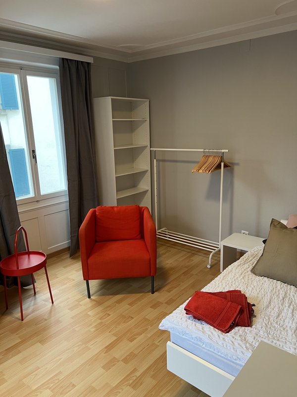 Available - free from 8. Dec 2025 till END of january 2026 + from 1.6.2026 - 31.1. 2027, for students or project members, for 1-6 months, based on a "plug and play" plan, ready to move in, including bed linens, bath towels, kitchen linens, dishes, high-speed Wi-Fi, etc. It features 3 bedrooms, a living room, a kitchen with a table, and a small bathroom. The apartment is located an 8-minute walk from the main train station on a quiet street with no through traffic. Ideal for students or project staff. Price depends on the rental period. The apartment can be rented separately if available. For a rental of 3 people: CHF 1,900/month plus utilities (electricity, gas, heating, Wi-Fi). CHF 350/month for less than 5 months. Onboarding fee in case of less than 5 months. Deposit: CHF 1,500. A washing machine and dryer are available in the basement (shared with other tenants).
