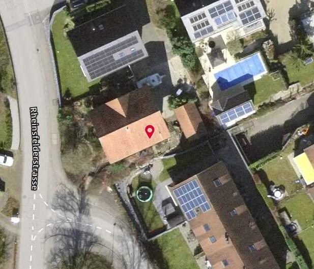 Einfamilienhaus mit Doppelgarage und Carport in Glattfelden. Gesamtfläche 499 m2, bestehend aus Gebäude Wohnen (84 m2), Unterirdisches Gebäude (28 m2), Nebenbaute (16 m2), Bodenbedeckung: befestigte Fläche (108 m2), Gartenanlage (307 m2), Gebäude (84 m2).