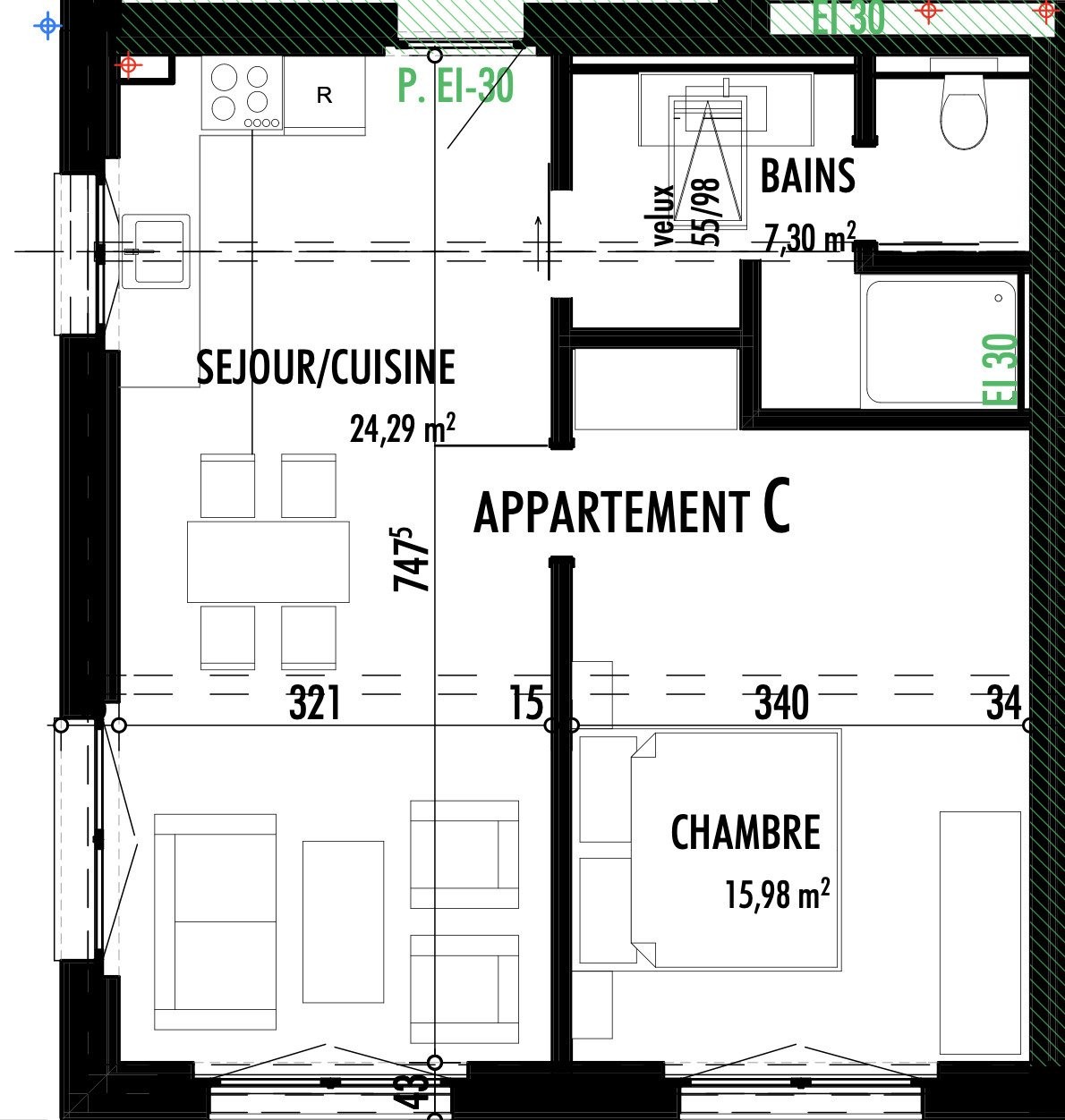 - accès à un balcon de 8.5 m2