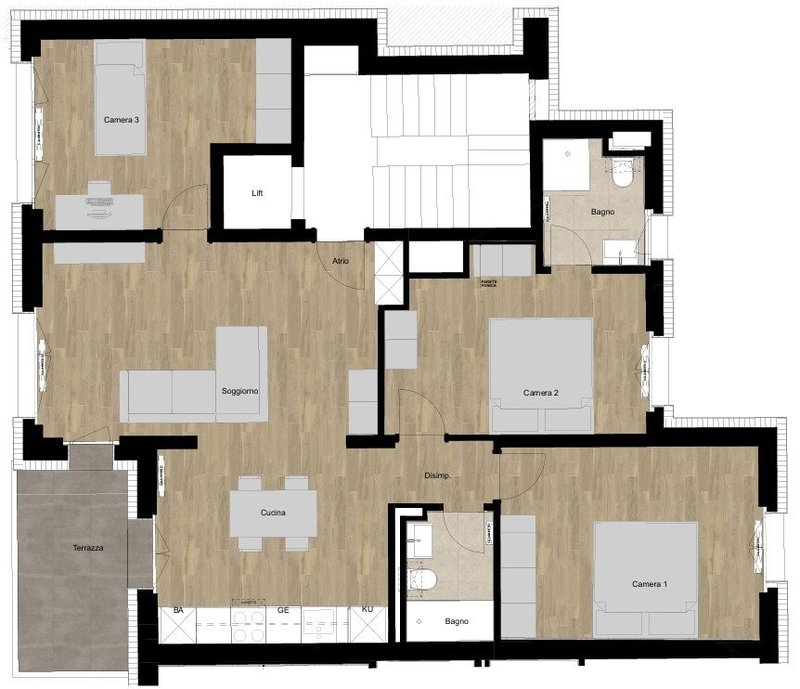 Questo stabile, composto da soli 11 appartamenti, avrà disponibile in prima locazione n.2 4.5 locali di circa 83 m², situati al 4° e 5° piano di cui quest'ultimo con ampia terrazza.