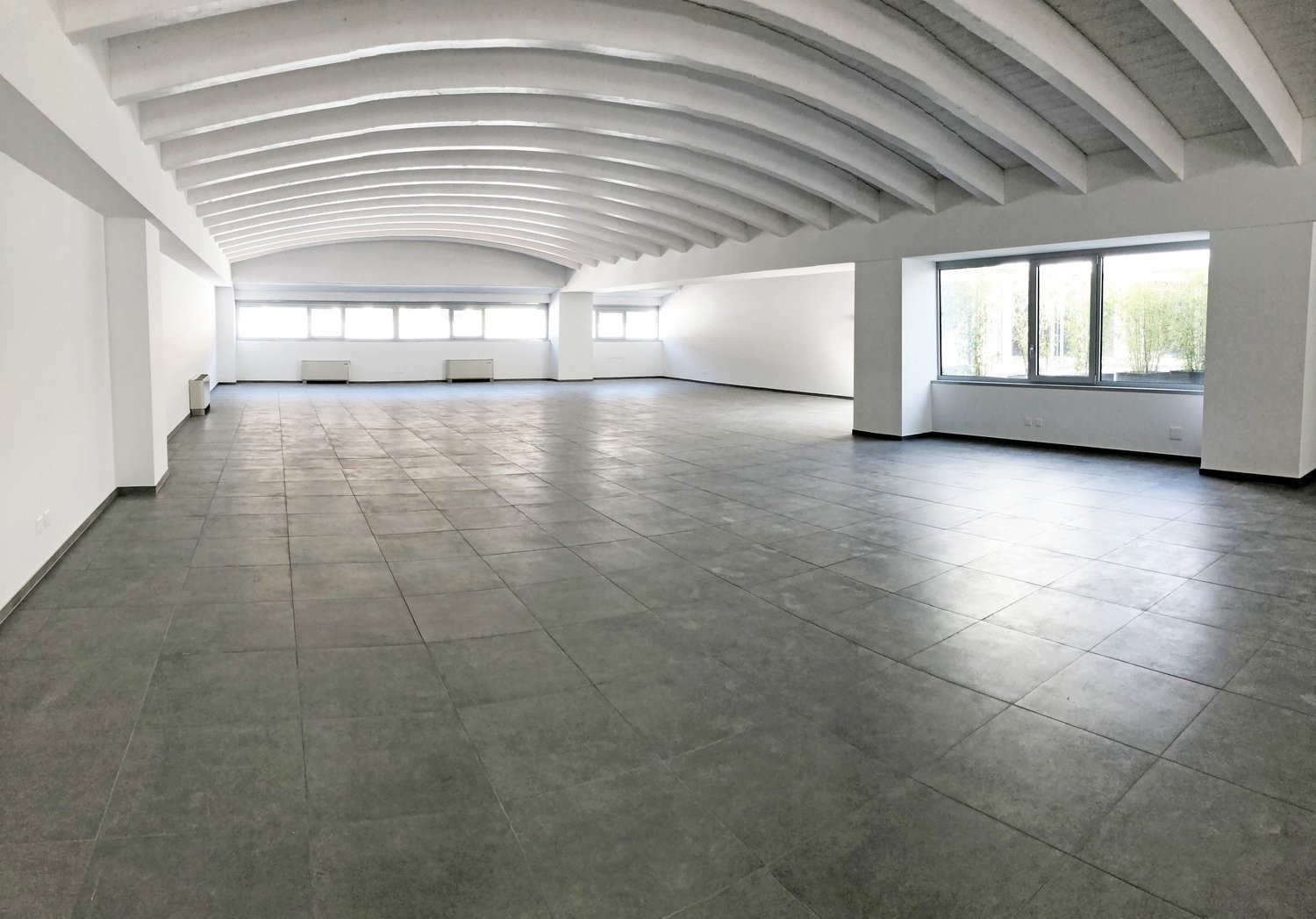 Lo spazio di 330 mq ha il soffitto a volta realizzato con travi a vista ed è provvisto di lucernari; la modernità del contesto e la cura dei dettagli interni assicurano ambienti accoglienti e confortevoli che ben si prestano ad ospitare anche uffici rappresentativi.