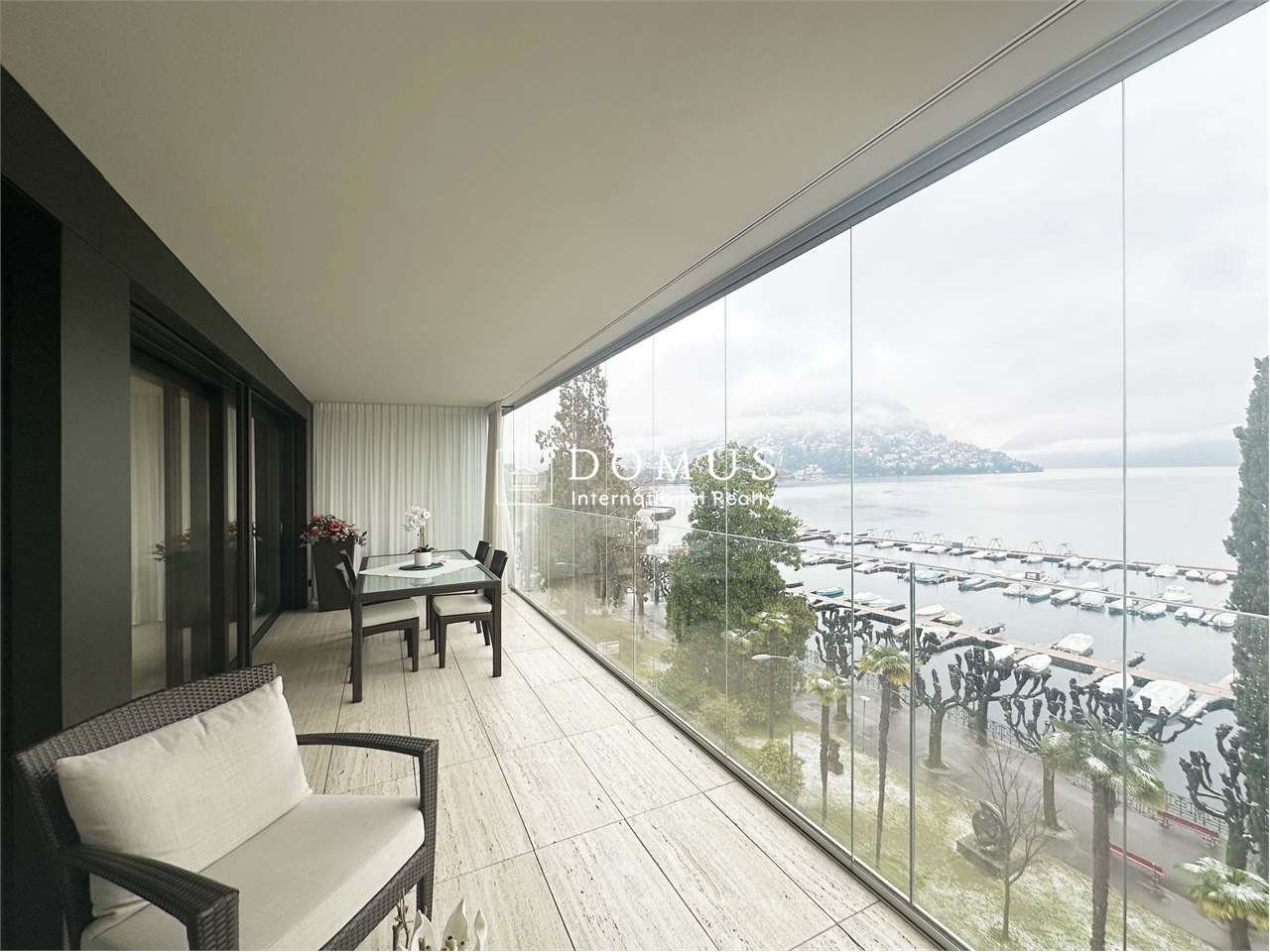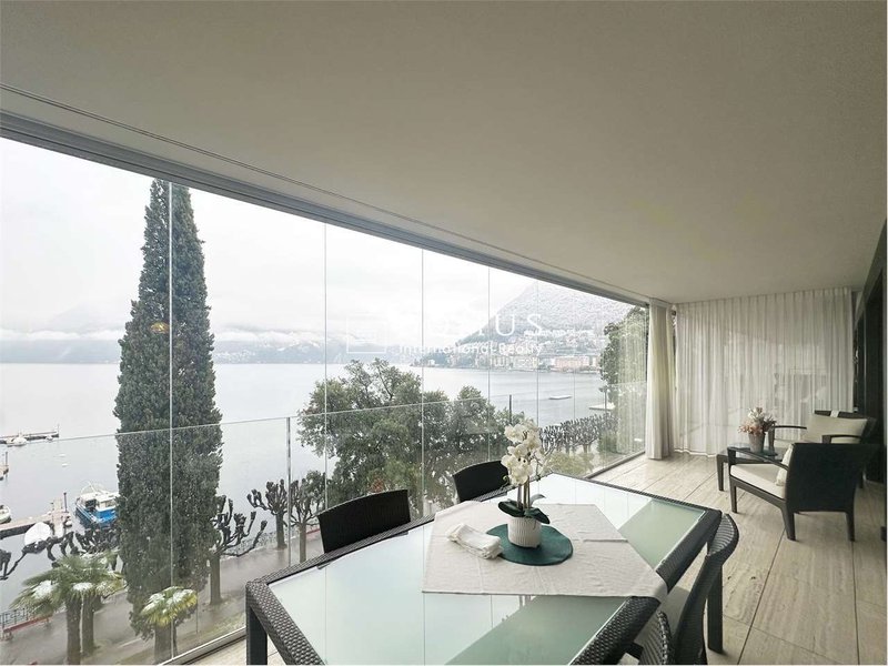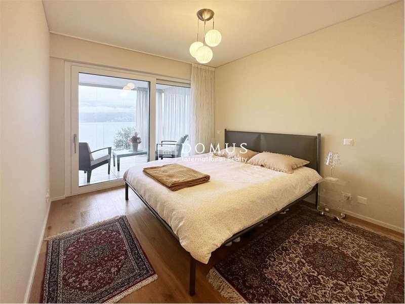 Lappartamento, di circa 97 mq, è composto da un ampio e luminoso living space con splendida vista sul Lago di Lugano e accesso a una terrazza di 22 mq, cucina a vista completamente accessoriata.