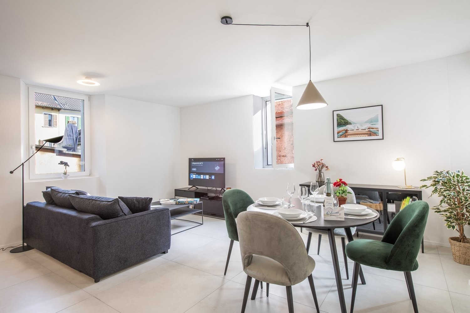 Corte di Ascona 1 accommodates up to 4 guests and is quietly situated on the second floor of a modern four-story building. Accessed through a historic courtyard this charming escape provides a luxurious lakeside retreat for a relaxing escape with family and friends or a romantic getaway with a loved one. The recently renovated property enjoys a well-equipped living space which has been stylishly furnished with a comfortable double sofa bed, a dining table and a smart flatscreen TV. This area also incorporates a well-designed kitchen, which is fitted with; a Nespresso coffee machine, an induction hob, an oven, a dishwasher and a fridge freezer.