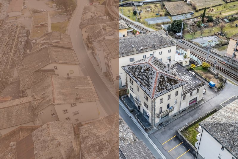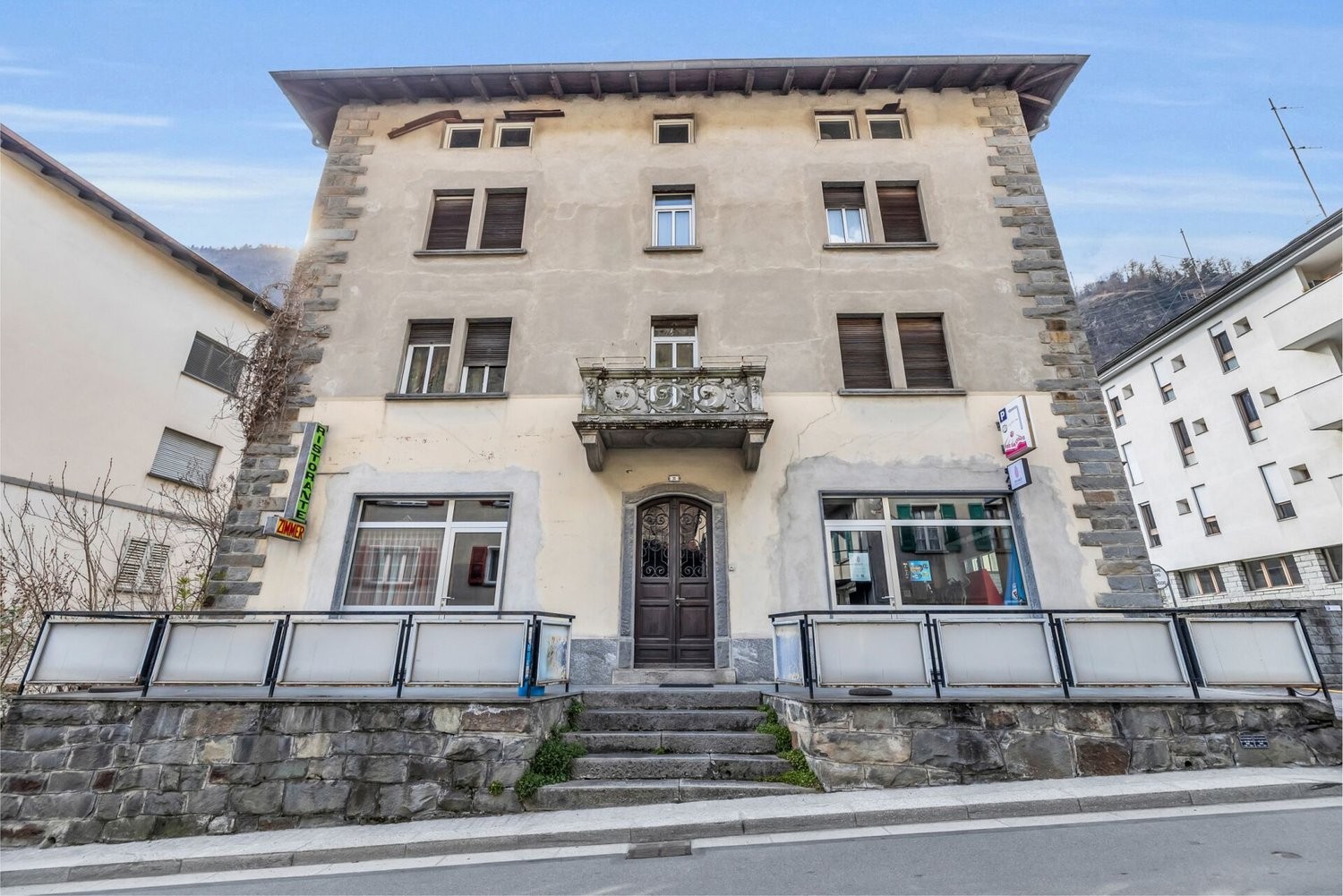 Dieses historische Gewerbe- und Wohnhaus, erbaut um das Jahr 1900, befindet sich in einzigartiger Lage an der Grenze zwischen der Schweiz und Italien. Mit seinem vielseitigen Raumangebot bietet es sowohl Wohn- als auch Gewerbenutzung. Die Zufahrt zur Liegenschaft erfolgt direkt über die Via Cantonale, eine gut erschlossene Strasse, die eine einfache Erreichbarkeit gewährleistet. Mehrere Aussenparkplätze befinden sich auf dem Grundstück und gewährleisten ausreichend Platz für Bewohner und Besucher. Die Fassade des Gebäudes strahlt den Charme vergangener Zeiten aus, während die solide Bauweise Potenzial für Modernisierung und individuelle Gestaltung aufweist.