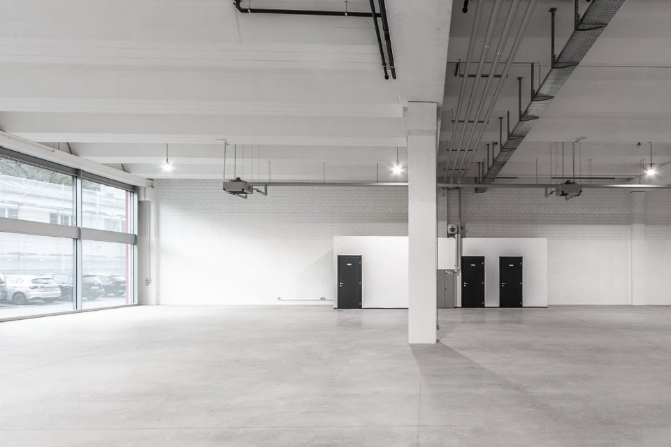 L'ampia e luminosa superficie offre differenti soluzioni fruibili come showroom, ufficio, laboratorio con annesso magazzino e deposito.
