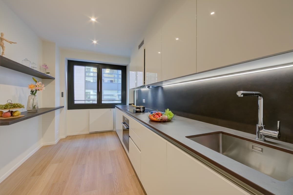 The apartment is situated in the middle of Lugano, just a 5 minute walk from the lakeside and 8 minutes from the central square, the Piazza della Riforma.