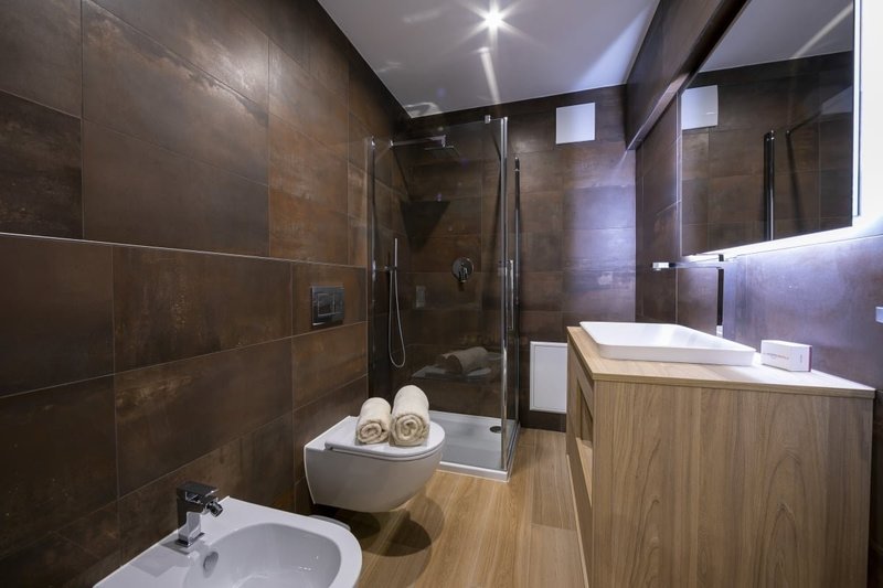 Bathroom: Pamper yourself in the contemporary bathroom, which boasts a luxurious rain shower for a refreshing experience.